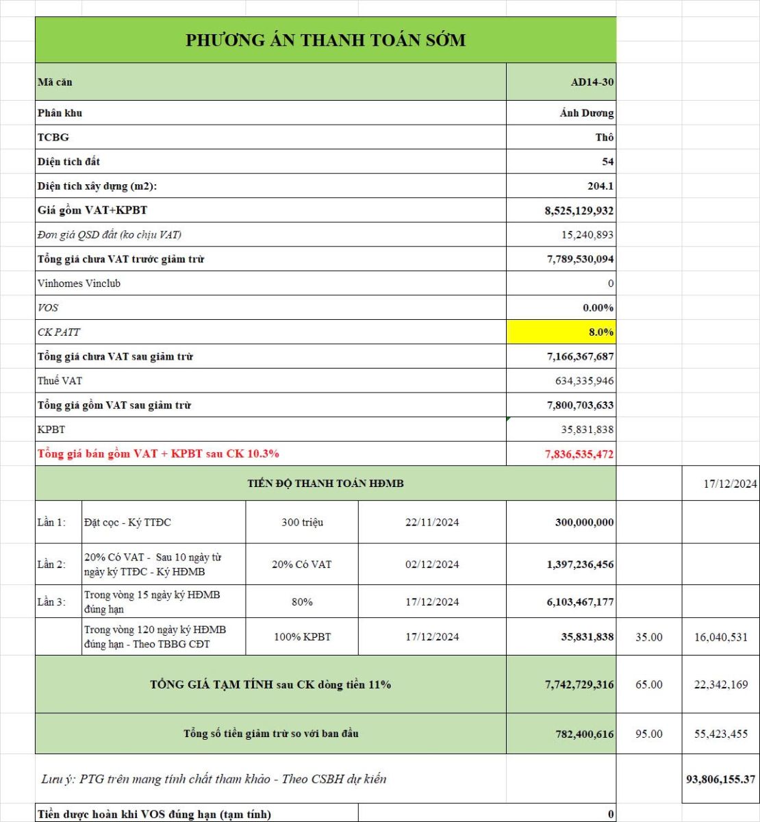 Phương Án Thanh Toán Sớm